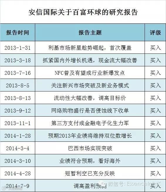 安信国际证券(香港)于2013年1月31日首次覆盖百富环球(327.hk)的深度研究报告,在中资券商中首个给予“买入”评级,当时股价仅1.8港币。随后我们将百富作为年度重点个股推荐,并连发了12篇研究报告,坚定看好,股价累计涨幅超过200%!