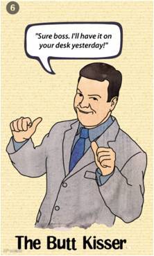 这种人四处逢迎,永远说着“yes”,以期可以获得老板和同事的青睐。但是,他们几乎不干实事,而通常由于他们表面功夫了得,所以即便他们没有完成工作,老板也会以为是因为他们实在太忙的缘故。