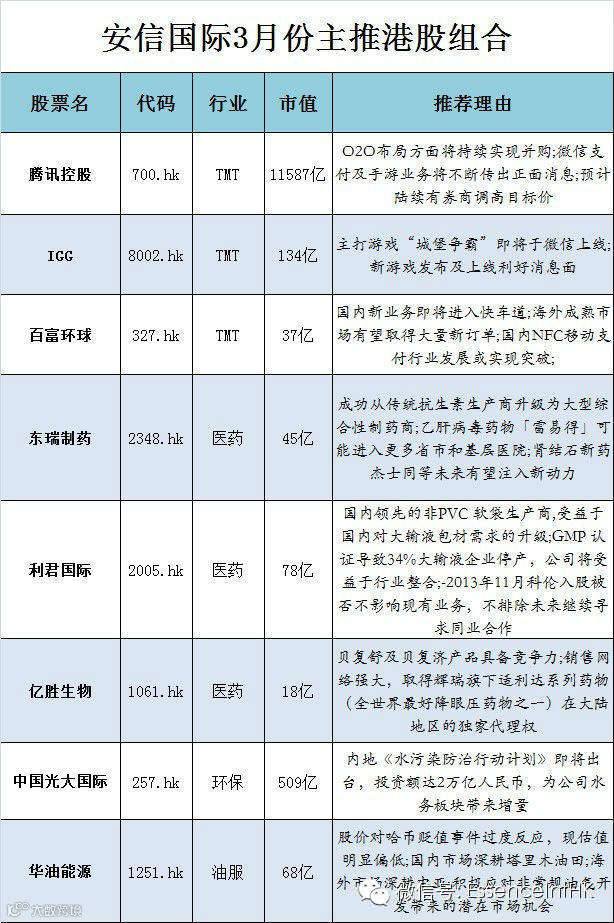 安信国际从3月份起推出月度组合