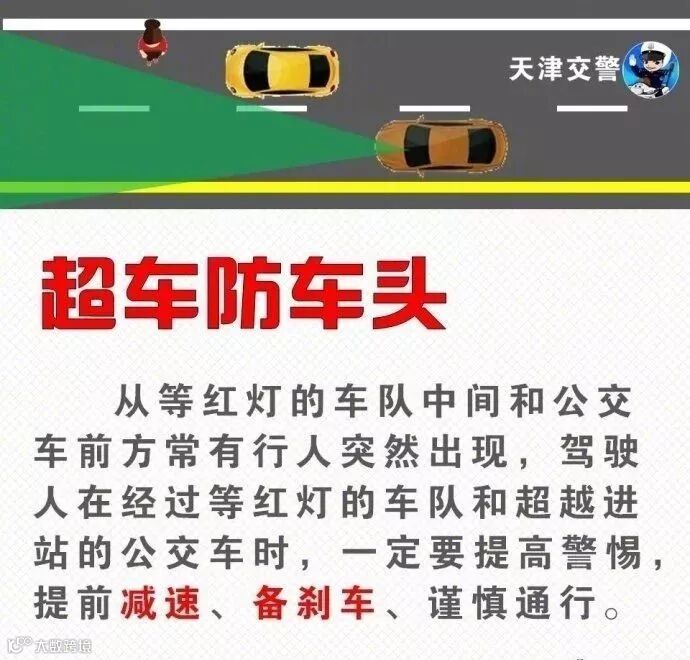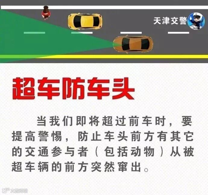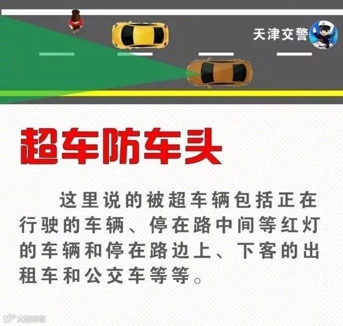 “超车防车头,会车防车尾”