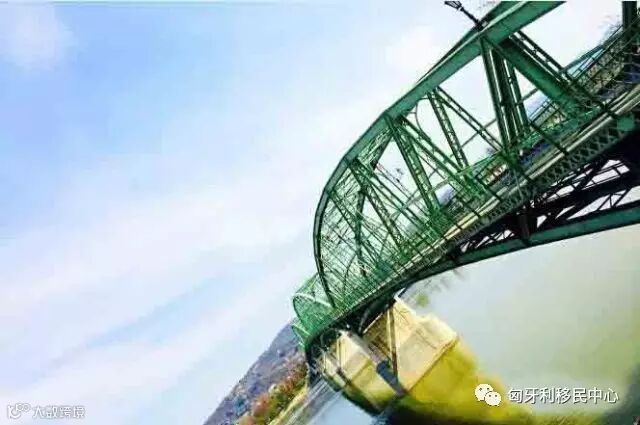 从教堂步行10分钟,便可以穿越国境,直接走到斯洛伐克境内。这座横跨多瑙河的绿色铁索桥的中心点,就是分隔匈牙利和斯洛伐克的边界线,从桥上可远眺Esztergom教堂和两岸风光。