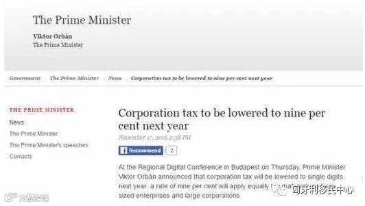 随着匈牙利总理欧尔班宣布,政府将于2017年把公司税降低到9%,匈牙利有望成为欧盟中公司税率最低的国家。目前,欧盟国家中,爱尔兰12.5%的税率几乎是最低的,只有保加利亚公司税为10%,塞浦路斯也同样是12.5%。