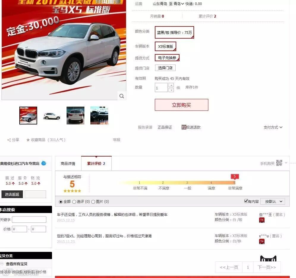 第一种在青岛或天津旗舰店提车:天猫付定金,在约定时间内,到青岛或天津店验车,验车没有问题的话,付全款提车,并办理相关手续。
