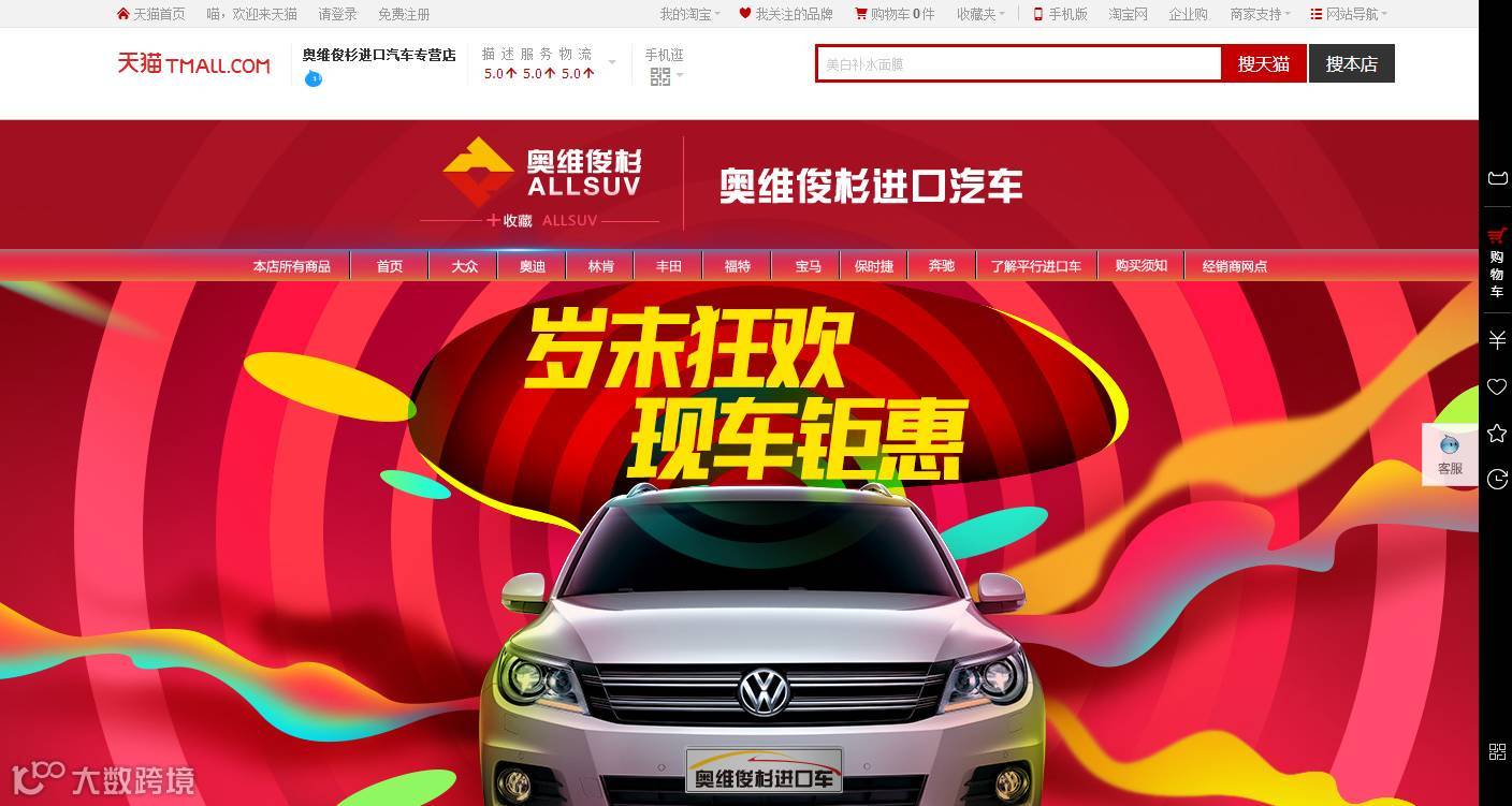 想买车但没时间去车行?去了车行但没看到喜欢的车型,怎么破?套句广告语“上天猫,就购了”,购进口高品质、价更优好车,尽在天猫“奥维俊杉进口汽车专营店”。