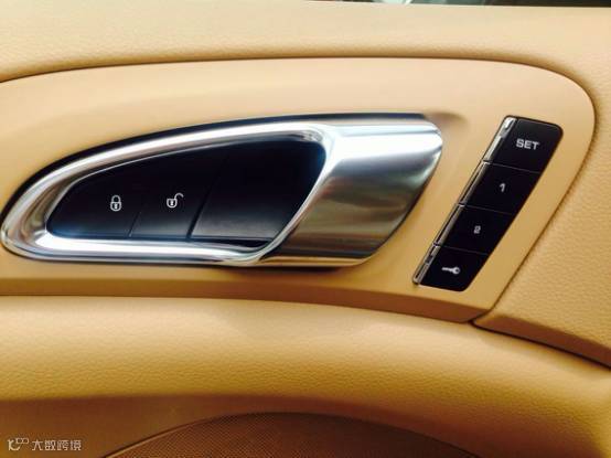 门板上的记忆按钮和调整后视镜的按键。卡宴的座椅记忆可就和一般的不一样了,下面有个小钥匙按钮,可以个性化的记忆单把钥匙启动车子的时候的一些信息,比如说空调温度,座椅位置,音量大小。