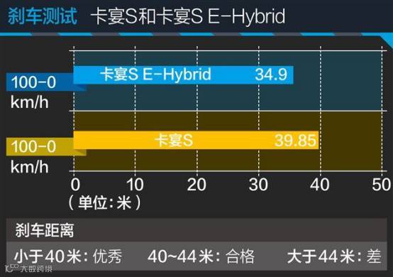 从实际的驾驶体验来说,小胖哥开了很久这款车,用一个词来形容驾驶感受,我想是暴力。个人感觉油混卡宴是X5以外最好开的SUV,小胖哥是X5粉,这个大家都知道。油混卡宴开起来真的不太像SUV,没有任何的拖沓和迟疑,动力直接迅速,最重要的一点是,油混卡宴刹车特别屌,不是一般屌,是特别屌。看看数据吧,这个最直接。混动卡宴34.9米,另一个运动健将X5是37.8米。卡宴S,39.85米。