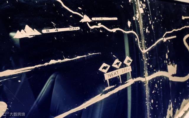 ▲ 右面车窗上则如一张探险者手中的地图,描绘着人迹罕至的地方,象征第四代发现对这类艰苦地形的征服