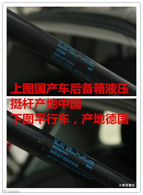零部件的产地和工艺,直接就代表着整个车的生产水平,这些东西对于任何一台车来说都是至关重要的。车的可靠性和耐用性,全看每个部件靠谱不靠谱了。小胖哥找了至少有二三十处这方面的差异,篇幅有限,我找几个有代表性的给大家看看。
