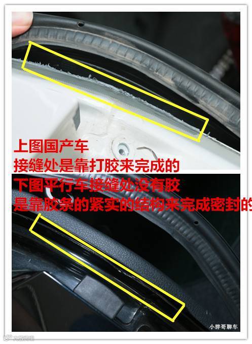 平行车的接缝没有胶而是靠胶条紧实的结构很好的卡在了连接处,最重要的是车的内部是有一层电泳漆。当一旦有水进入到车身内部的时候,电泳漆可以很好的隔绝水分子来达到防腐防锈的效果。电泳漆的制作方法有点复杂,小胖哥就不讲了,它的功效简单来说就是防止氧化和防止腐蚀的。它的出现很好的弥补了传统漆面的一些不足。