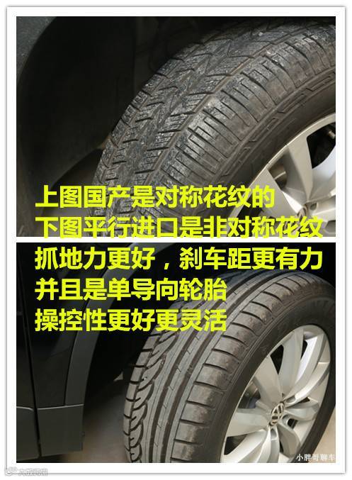 先看看花纹的差异,非对称花纹抓地力更好,加油和刹车更迅速。单导向轮胎,一遍都是运动型车会选择的轮胎,更利于操控,驾驶更犀利。