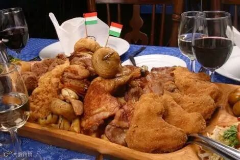 说到文章的核心内容,就要先说吃饭的顺序:西餐对用餐的顺序很讲究,首先是开胃菜或汤,然后服务员才会上主食,汤没喝完主食就不会上来。所以不要怪西餐厅上菜慢,人家服务员还嫌你吃得慢呢。吃饭不要太贪,下一道菜的份量永远是个惊喜。匈牙利的好客精神在饭馆里很明显,没吃完服务员会很失望。插进一条小知识:吃饭时暂停,如果刀叉并在一起竖着放,意思是我吃完了,可以撤;如果刀叉摆成 X 行,意思是我还没吃完,不要动我的东西;永远不要刀叉并在一起横着放,要不然服务员会以为你对他们的饭菜不满意。