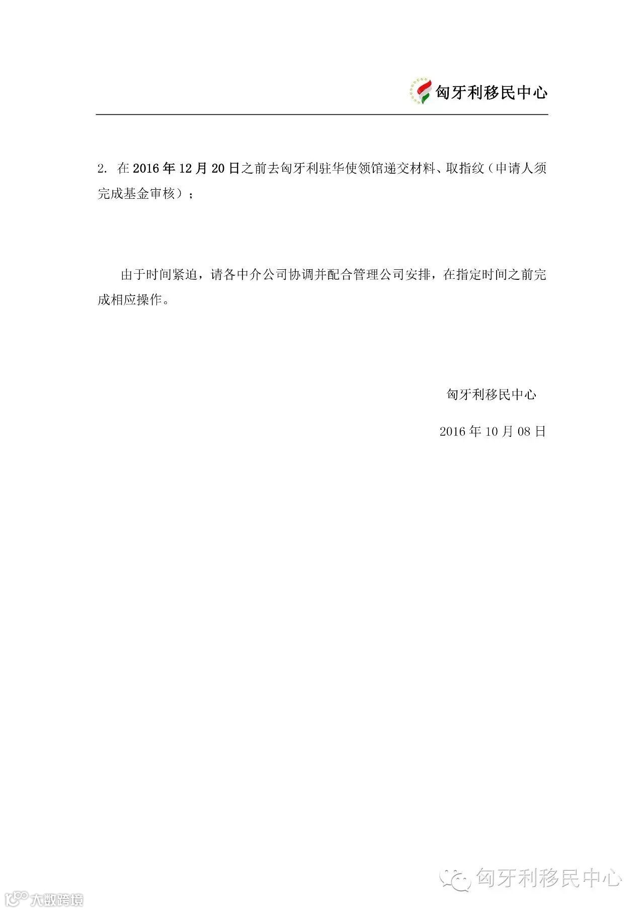 2. 在2016年12月20日之前去匈牙利驻华使领馆递交材料、取指纹(申请人须完成基金审核);
