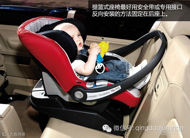 我们建议提篮式座椅最好用安全带或专用接口反向安装的方法固定在后座上,而且安装在副驾驶席后面的座位上,这样能更方便的在停车时抱起孩子上下车。