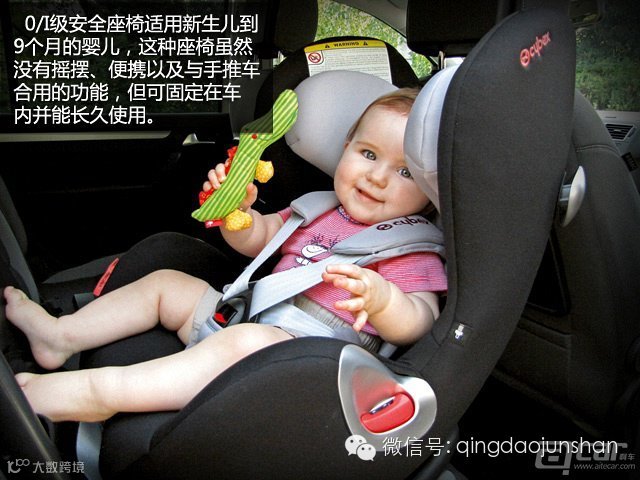0/I 级安全座椅适用两个阶段:包括新生儿到 9 个月的婴儿,和 9 个月的婴儿到 4 岁的儿童。这种座椅虽然没有摇摆、便携以及与手推车合用的功能,但可固定在车内并能长久使用。
