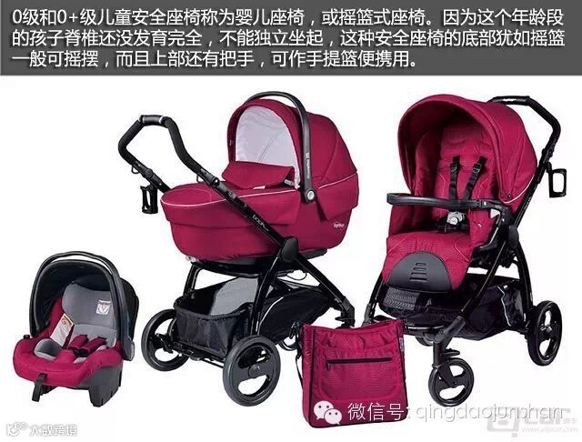 0 级和 0+ 级儿童安全座椅,适用于从新生儿到 15 个月的婴儿(即体重在 2.2kg-13kg 之间的婴儿),该类型的座椅称为婴儿座椅,或摇篮式座椅。因为这个年龄段的孩子脊椎还没发育完全,不能独立坐起,所以这个阶段就要选用提篮式产品。这种安全座椅的底部犹如摇篮一般可摇摆,而且上部还有把手,可作手提篮便携用。