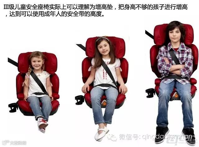 III 级儿童安全座椅实际上可以理解为增高垫,把身高不够的孩子进行增高,达到可以使用成年人的安全带的高度。
