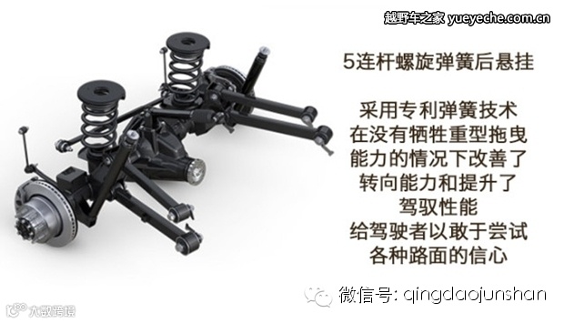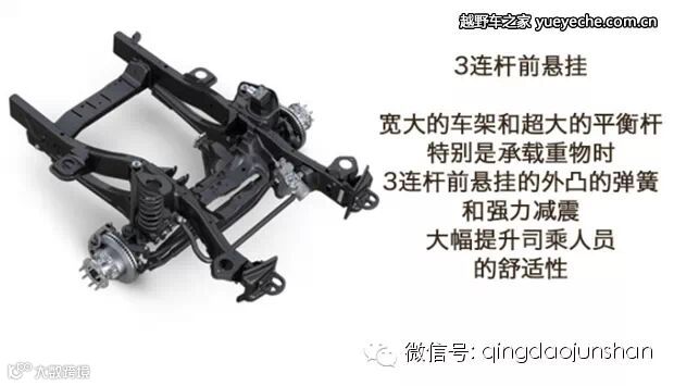 前后整体桥使其异常扎实,后悬架采用了五连杆结构,而前悬则采用了名为Articu 的独特的三连杆结构,该结构能够允许摆臂有更大的活动范围。而电子扭力杆控制则允许在极端路况下断开前桥的防倾杆,从而简单有效地增加悬架的行程。