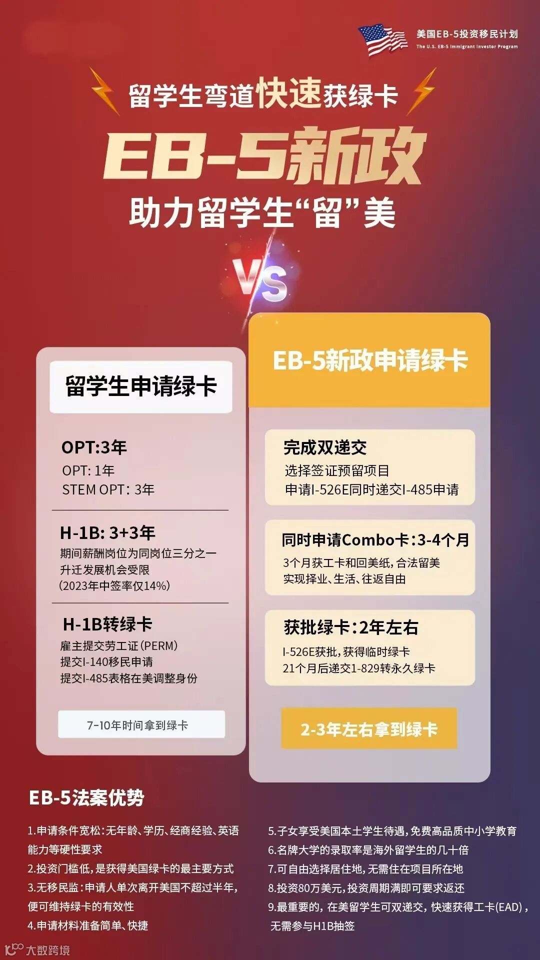 越来越多留学生家庭正在主动切换赛道,绕开身份焦虑,提前规划绿卡路径,尤其是在当前“身份不确定性”愈演愈烈的背景下,EB-5新政可以快速解决留美身份问题。