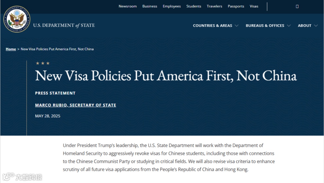 而自2025年初以来,从哈佛国际生风波、暂停签证预约、扩大社交媒体审查,再到今天的撤签,几乎每一次政策动向都直指中国学生。