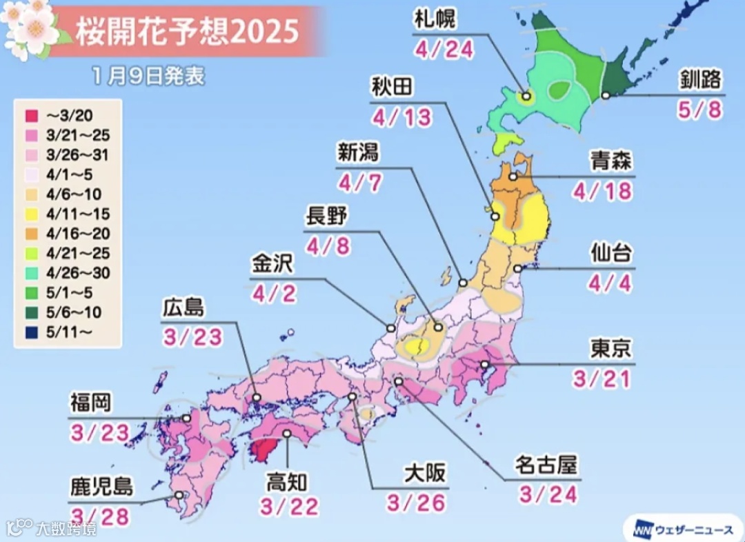 如果你想错开熙攘的樱花季高峰,2月就盛开的伊豆半岛河津樱花与5月才迟迟露面的北海道樱花都是不错的选择;但如果想要感受呼啸浓烈的樱花大潮,还是得赶赴3-4月的常规樱花盛开季。