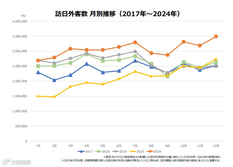 除学校假期外,圣诞节、年末年初的旅行需求也在很多市场高涨,自1964年开始统计以来,单月首次突破340万人。