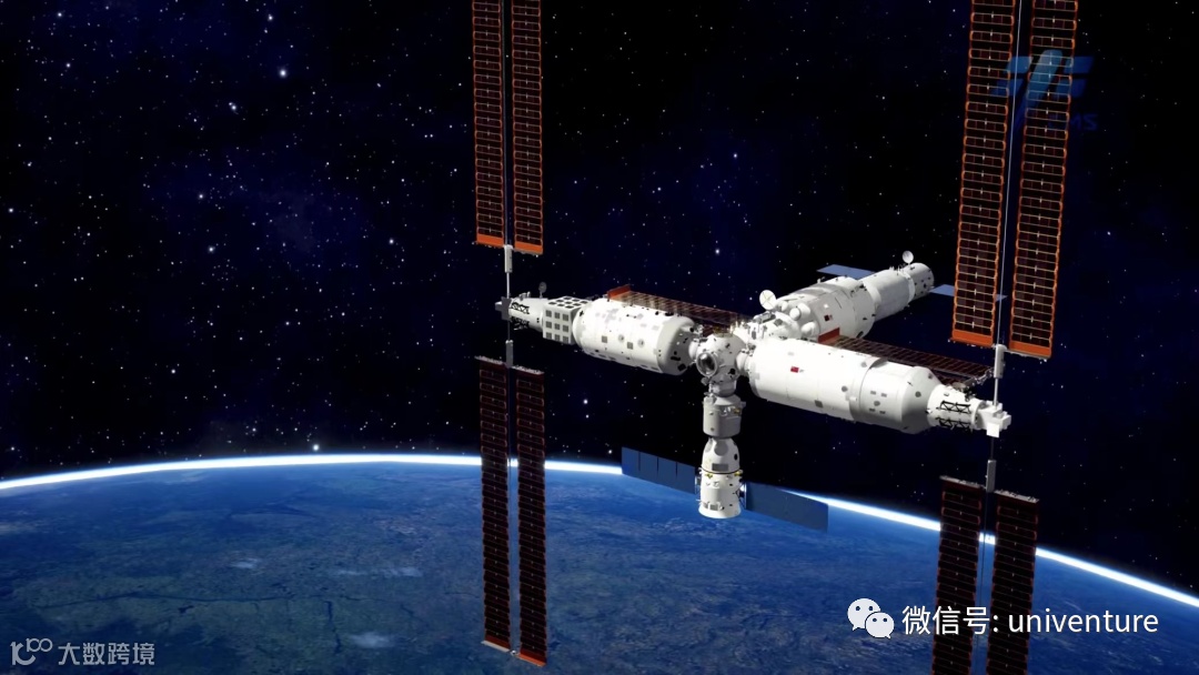 2022年11月3日,梦天实验舱完成转位,与天和核心舱、问天实验舱形成空间站“T”字基本构型组合体。图片来源:中国载人航天