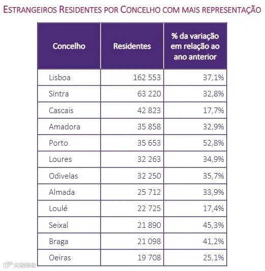 居住在葡萄牙的外国人数据,图源:AIMA |