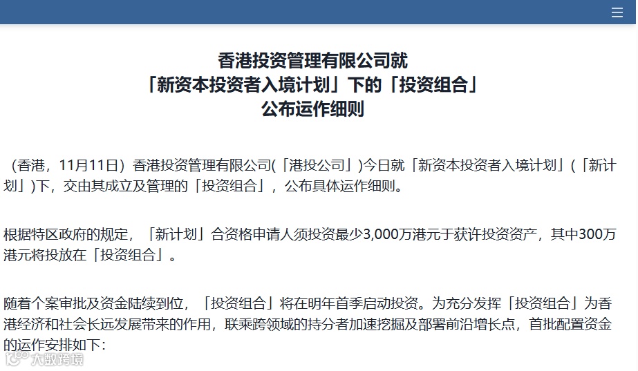 在成功获批后,除投向投资组合的300万港元外,投资者可将剩余的2700万港元投资于股票、基金、债券、物业等获许投资资产中。在投资额度不减少的前提下,投资者可以随时转换投资类别。