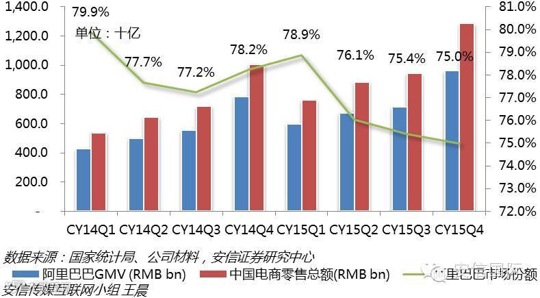 图1: 中国电商零售额 vs. 阿里巴巴GMV