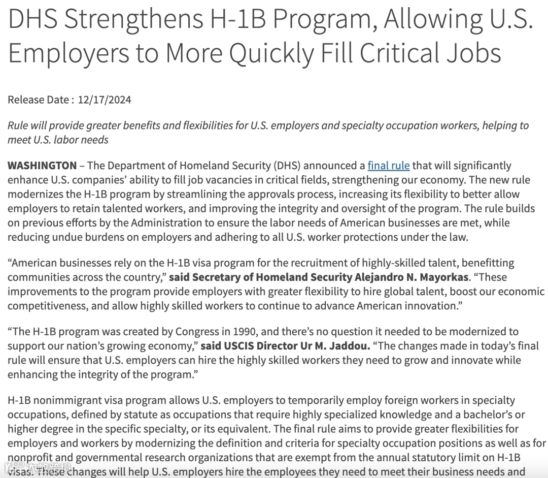 近日,美国国土安全部官宣:对已实施了34年的H-1B签证实施重大改革。