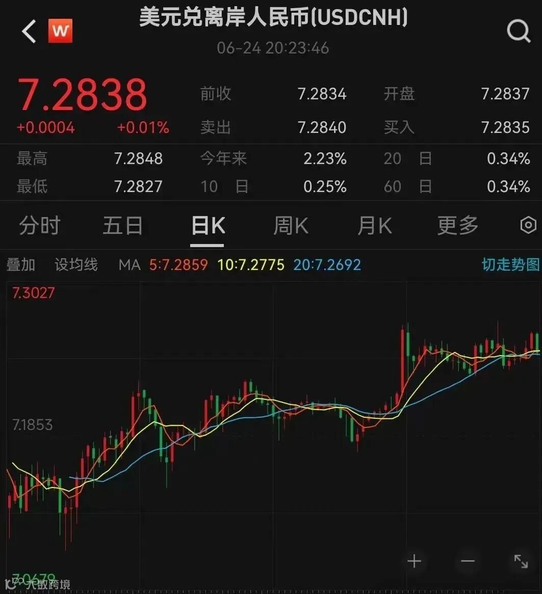 人民币汇率又逼近7.3关口!截止6月26日,美元离岸人民币汇率报7.2838,美元兑在岸人民币至7.2598,创年内新低。