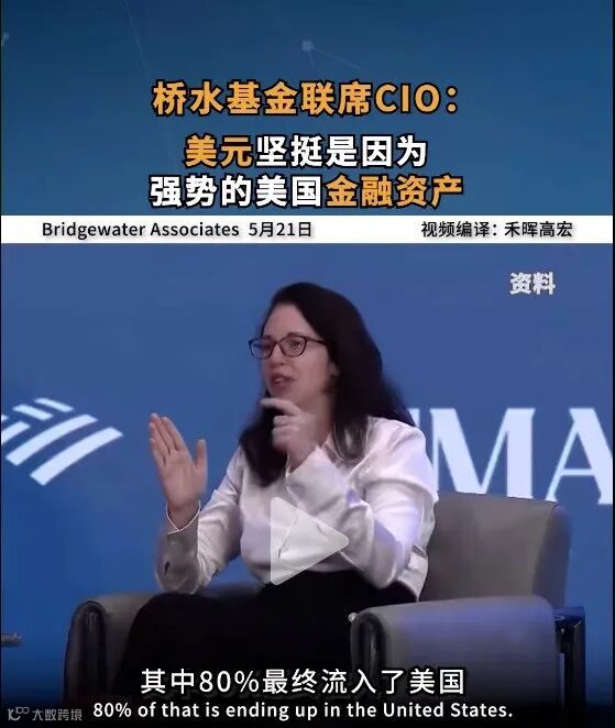 最近一个短视频刷屏,桥水联席CIO卡伦·卡尔尼奥尔-坦布尔坦言一个现象:全球的跨境储蓄,最终80%都流入了美元。