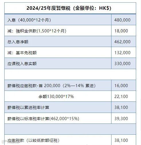 一般来说,除了缴纳2023/24课税年度的税额,还要缴纳2024/25年度暂缴薪俸税,即你把去年的薪俸税交完了,还得把今年的薪俸税提前交了,等下一个年度的税出来再多退少补。