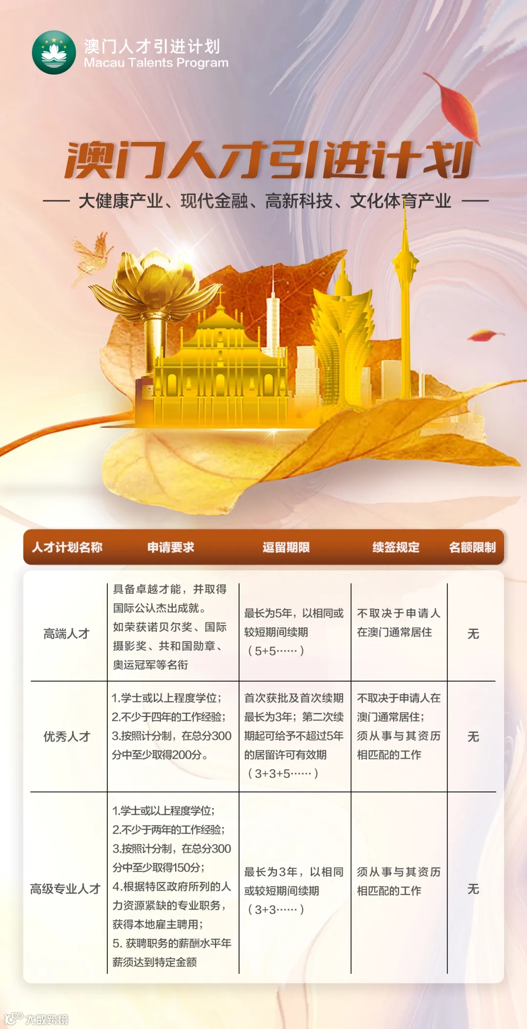 澳门人才计划在2023年7月1日开放申请,2024年3月13日终止,据澳门专责小组消息称,新的一期计划将于2024年第二季度适时推出。