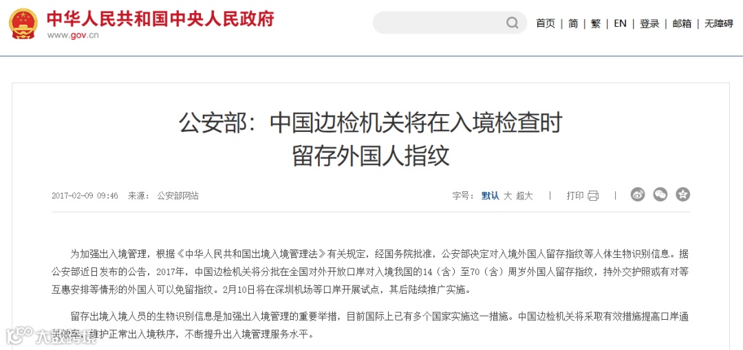 而根据2017年公安部关于对入境外国人留存指纹等生物信息公告的有关规定:持证人在口岸履行指纹采集等手续后,可以经快捷通道通关。