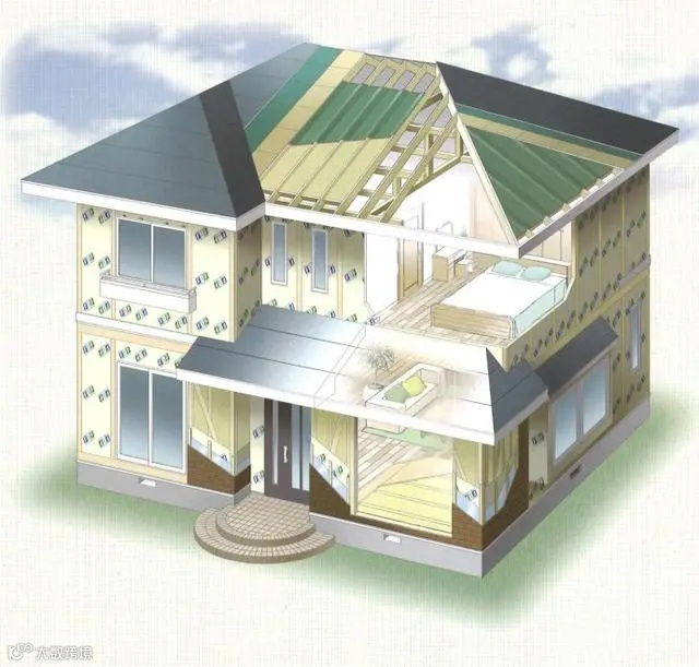日本人房屋建造在保温方面下足了功夫:外壁(外墙墙体)、間仕切壁(隔墙)、屋根(屋顶)、天井(天花板/天棚)、床下(地板)全方位的保温处理,采用纤维系列保温材料、挤塑XPS聚苯乙烯泡沫保温材料、硬质聚氨酯泡沫、酚醛树脂泡沫等作为保温材料,不但保温,也有很好的防潮作用。日本房屋大部分还采用断桥铝作为门窗的基本材料,玻璃一般是2层以上,可以做到少损失一半的热量。