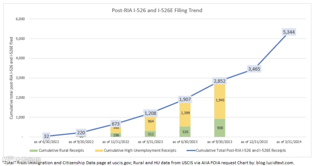截至2024年三月底,总的新政I-526递件数量已经达到5344件。