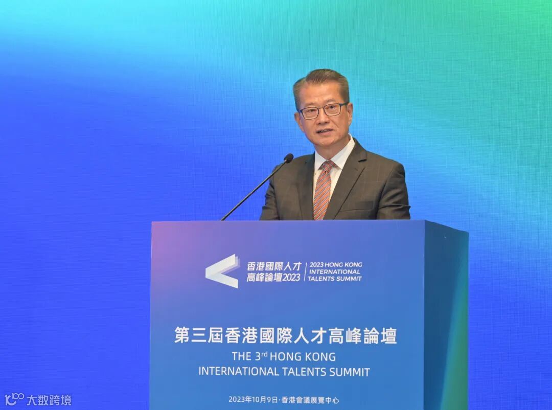 财政司司长陈茂波10月9日在第三届香港国际人才高峰论坛致辞。