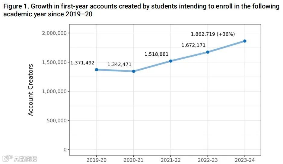 首先,第一年注册CA账户的人数多达1,862,719人,同比疫情前的2019-2020申请季增长36%,同比上一申请季增长11%。
