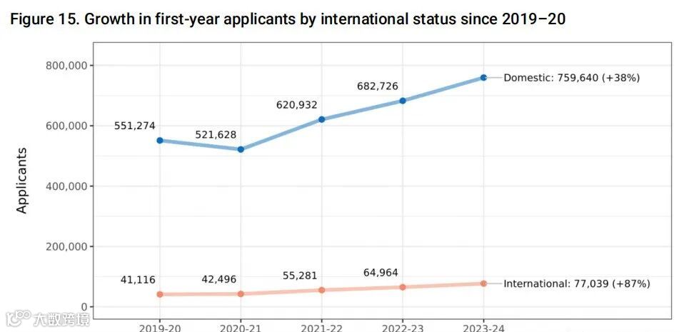 提交申请的国际生多达77,039人,比2020 Fall暴涨了87%。