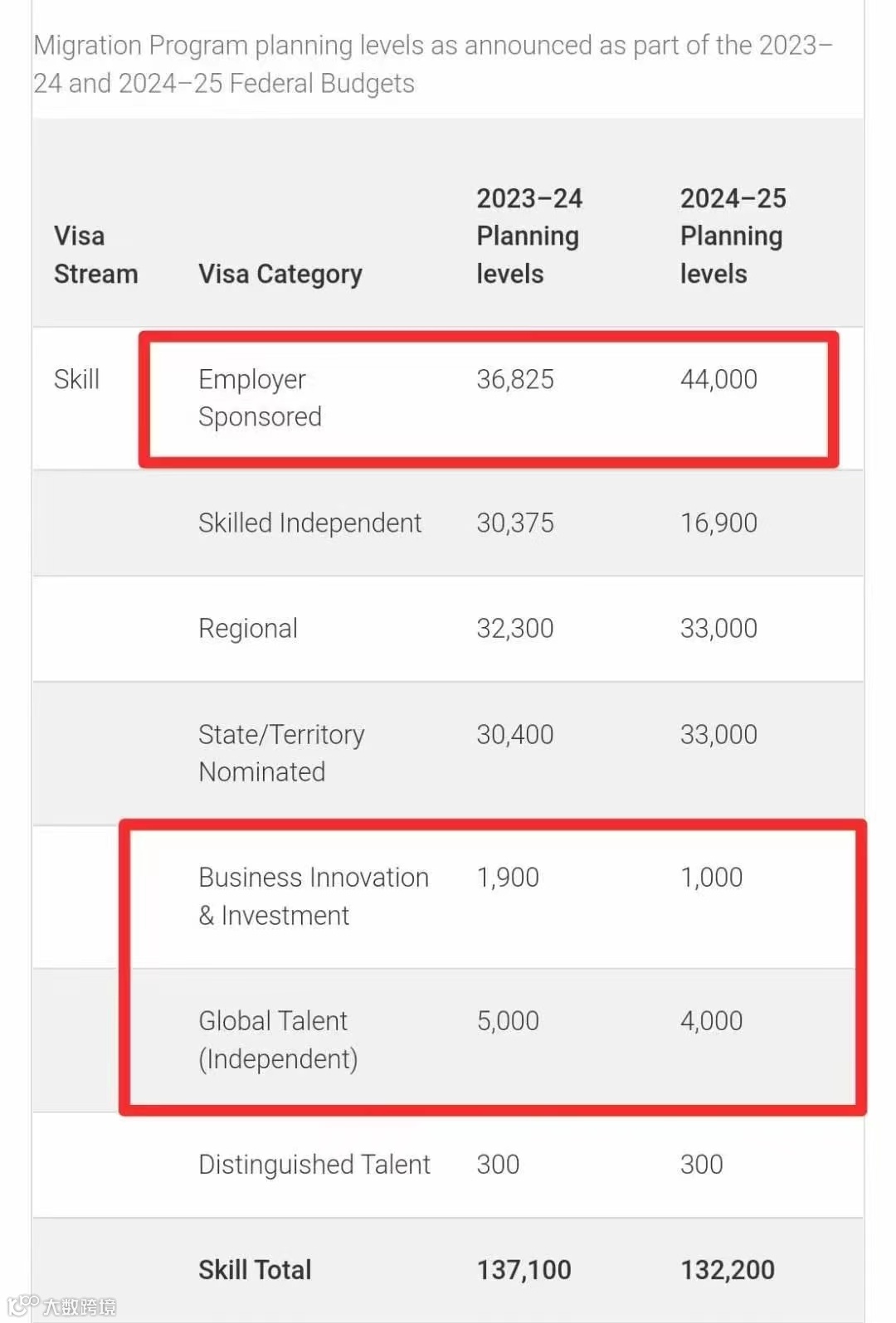 GTI杰出人才移民的配额相比上个财年也有所减少,2024-25财年配额是4000个。GTI签证将被National Innovation visa国家创新签证所取代。该签证主要是为了吸引优质企业家,重大投资者和全球研究人员。