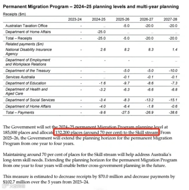 另外,自2025-26财年起,澳洲政府将把永久移民计划的规划期从一年延长到四年。