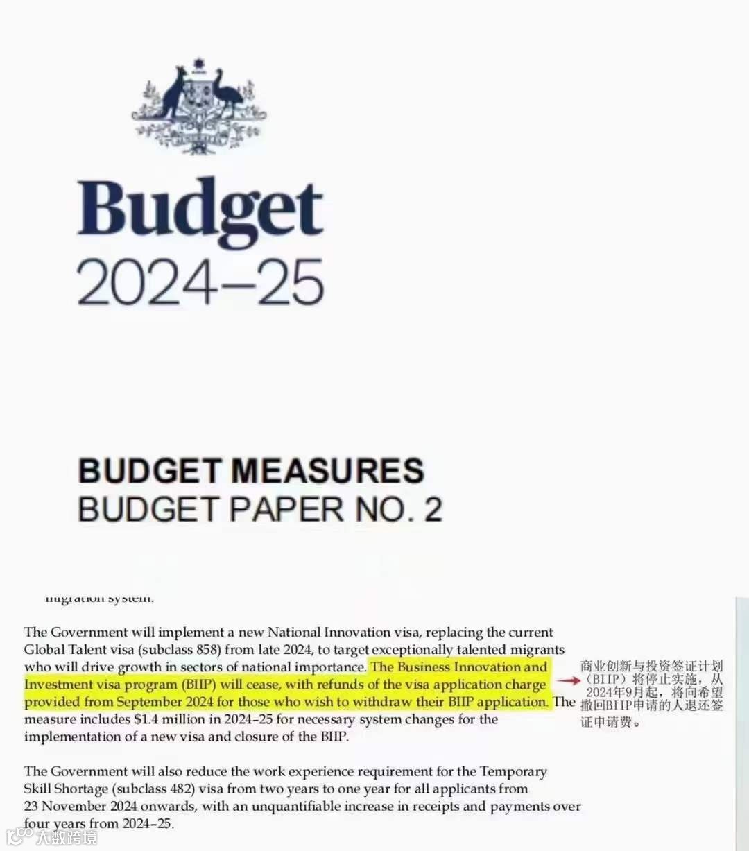 商业创新和投资签证计划(BIIP)将全面关闭,从此退出历史舞台!从2024年9月起,希望撤回投资移民签证申请的人可申请退还签证申请费。