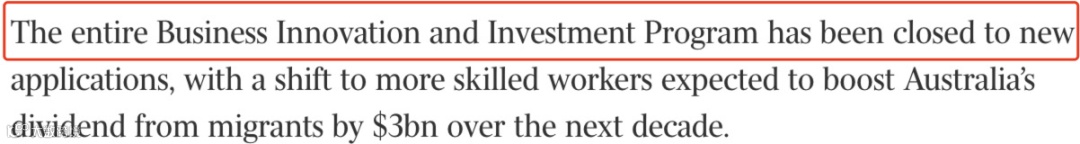 澳洲工党决定:整个商业创新和投资计划BIIP(Business Innovation and Investment Program)不再接受新的申请!