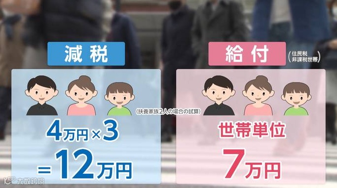 如果缴税额未达到每人减税4万日元的额度,日本政府将考虑补贴差额的部分。