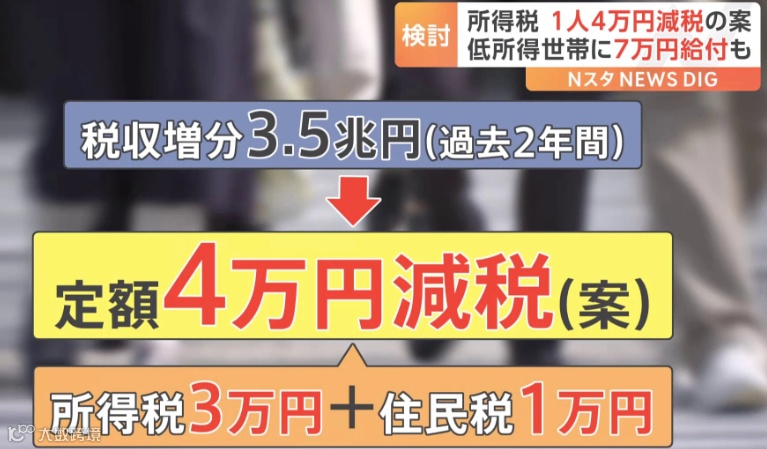 据估计,日本国内约有9000万人将获得4万日元的减税,预算规模约为3.5万亿日元。