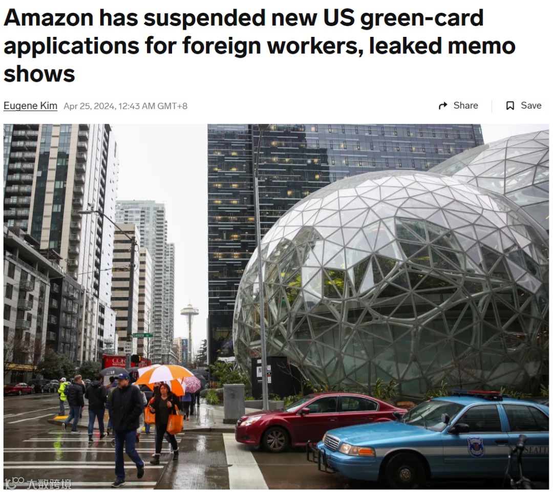 导读:据Business Insider报道,亚马逊近日宣布,将暂停为外国员工担保新的美国绿卡申请,此举被视为科技就
