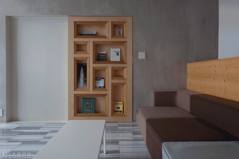 这面移动电视墙可以将整个空间隔离成五个空间。