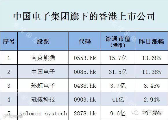 安信国际证券(香港)特别为您梳理了中国电子集团旗下的港股上市标的供参考