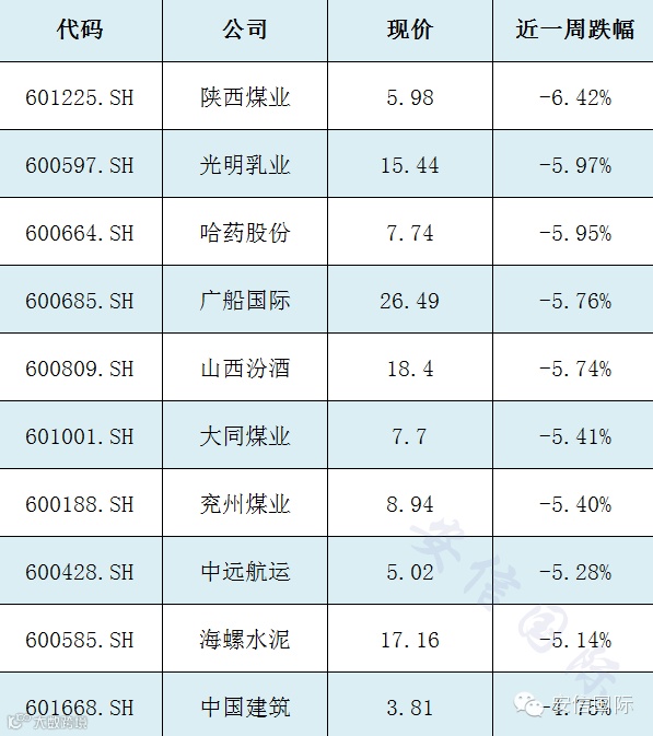 沪股通首周跌幅前十